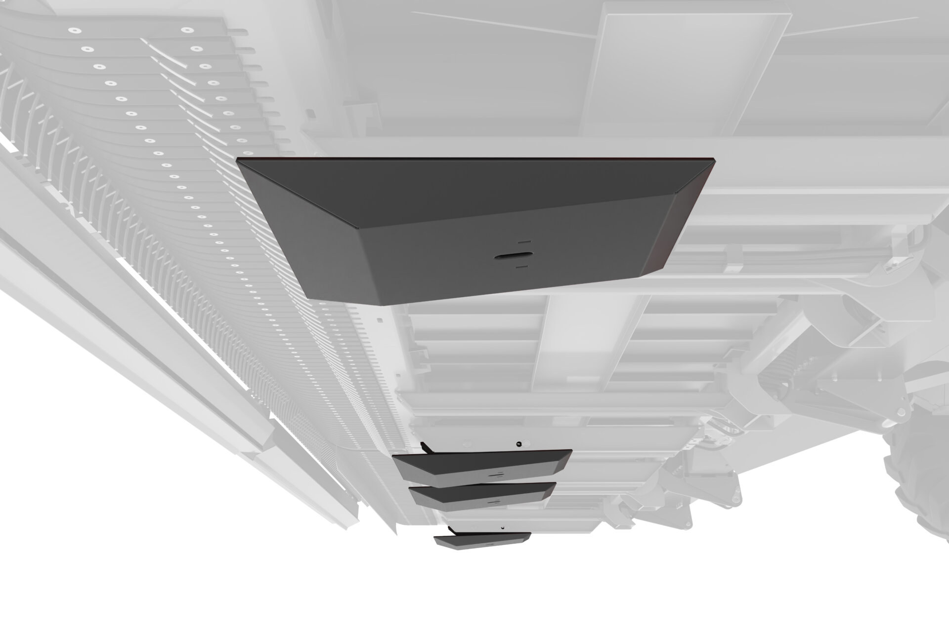 Commercial-grade belt conveyors provide efficient transition from crop to windrow, regardless of delivery side. The conveyor belt is self-cleaning and requires no tracking adjustments. The belt tension can be adjusted without any tools.